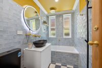 + Bathroom, bath, brass fittings, black toilet, rain shower