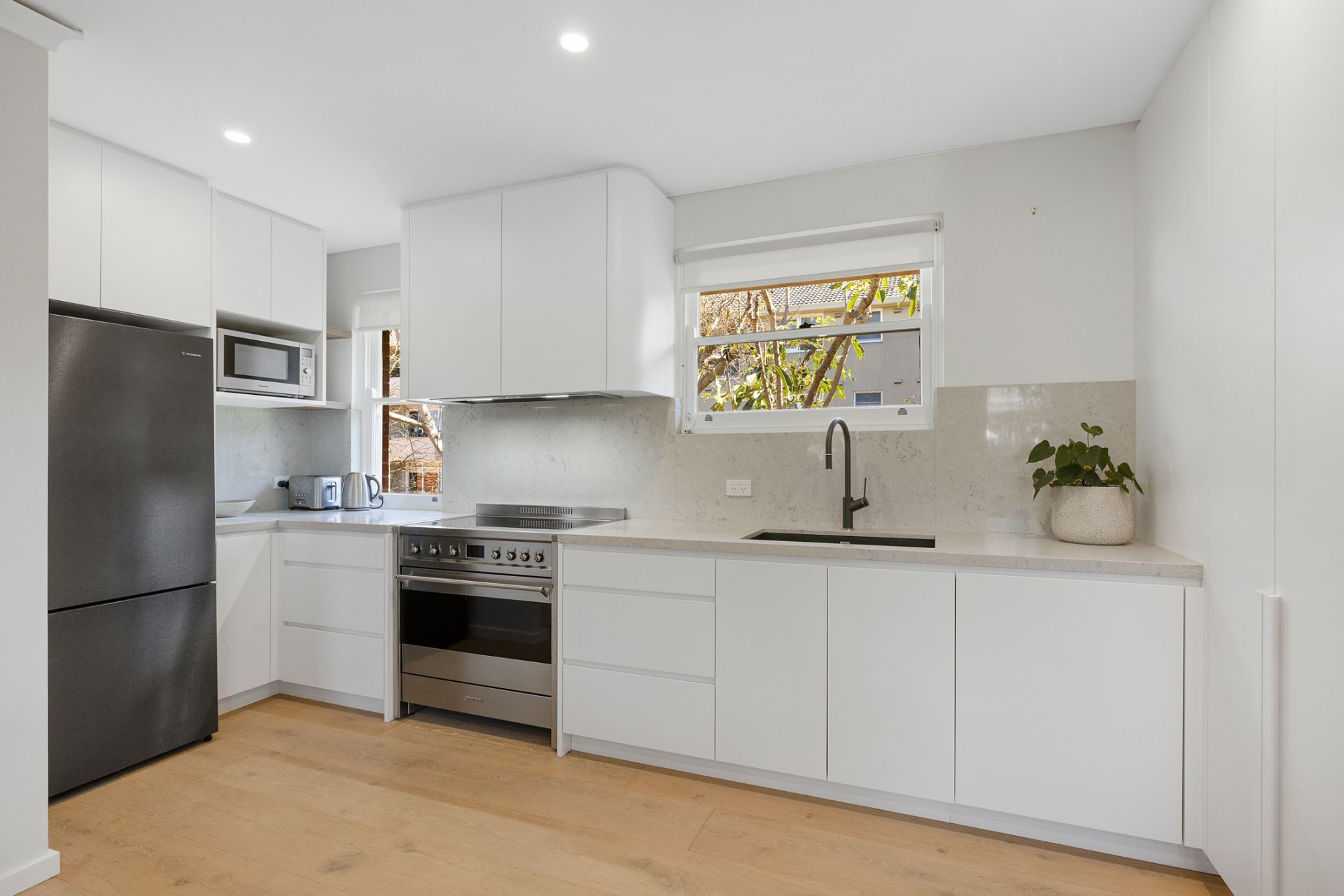 Beautifully renovated, the as‑new kitchen features abundant storage and sleek Caesarstone benchtops, complementing the immaculate presentation throughout. Set within a well‑maintained security complex, the apartment enjoys a quiet rear position with convenient parking.